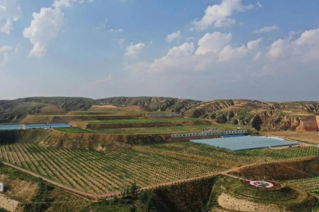 2.万亩示范园,沟壑变良田。通过“坡改梯工程”整治农田5000余亩,种植土豆、玉米、糜子等绿色高产农作物4300亩;种植“寒富苹果”等8种特色水果为主的采摘园400亩,种植紫花苜蓿300亩;建成全钢双膜拱棚20座、暖棚7座、1.7万立方米的蓄水池4座。