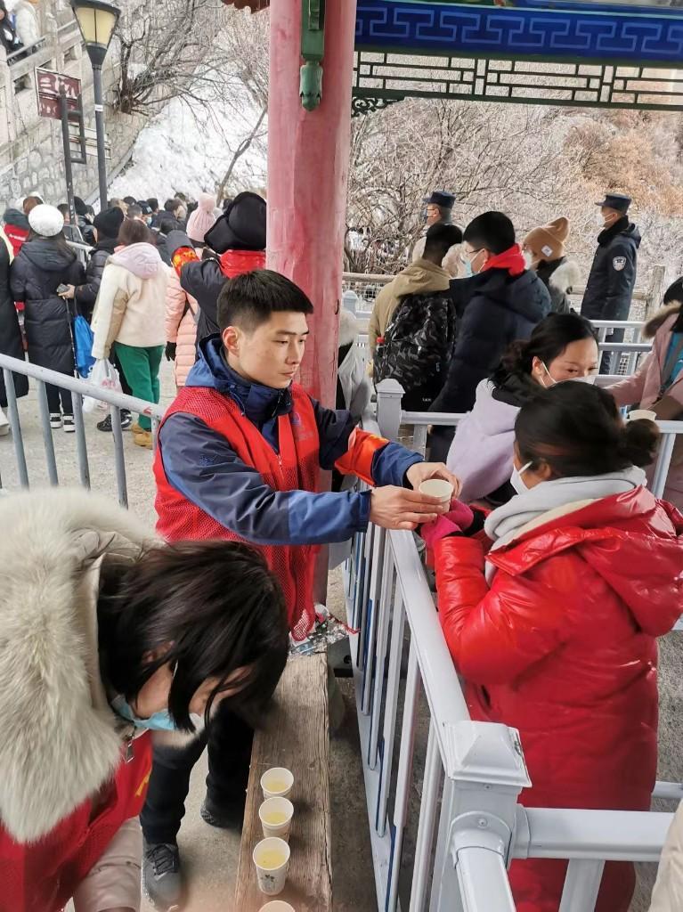 华山景区举办了“华山味·中国年‘冰雪+温泉’福兔祈福华山过大年”新春迎宾系列活动,推出华山春节福兔祈福迎宾七大优惠,为来华山的游客呈上一道旅游盛宴。华山脚下,最早的中国式摇滚——华阴老腔和华阴素鼓双非物质文化遗产表演,喜闹新春。春节期间,华山景区客流大增,大年初三16:00,入园人数已接近景区最大日限流量1.5万人次,西峰和北峰索道上下站都排起了长龙。当天气温突降,景区工作人员贴心地熬煮了热气腾腾的红枣姜汤送到游客手中,游客纷纷赞叹:“太暖心了。”