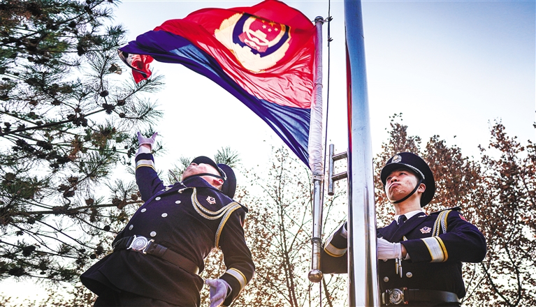 西安市公安局举行警旗升旗仪式(资料照片)。通讯员 龙云摄