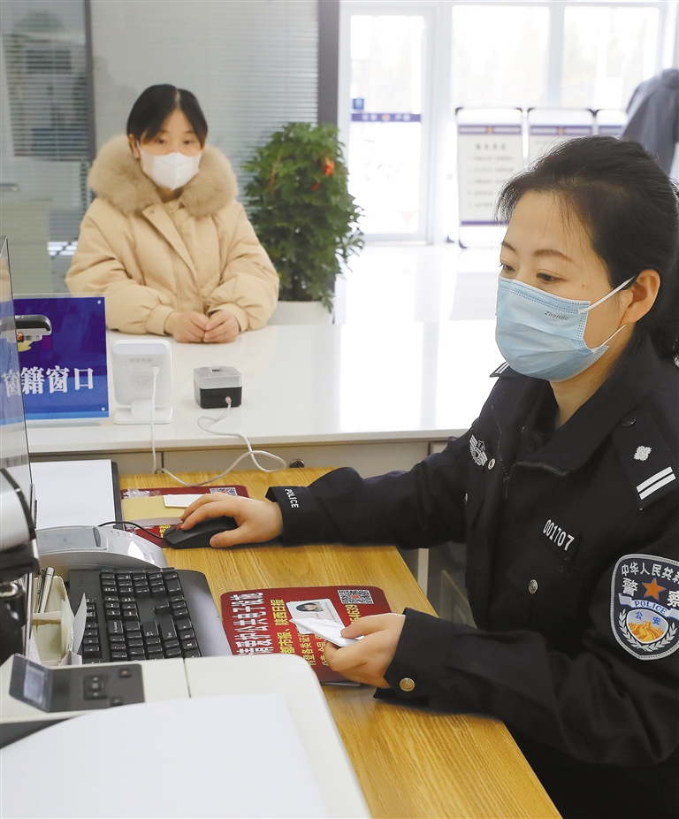2023年12月28日,杨凌示范区政务服务中心公安分中心,民警郑惠为群众办理身份证业务。 记者 安涛摄