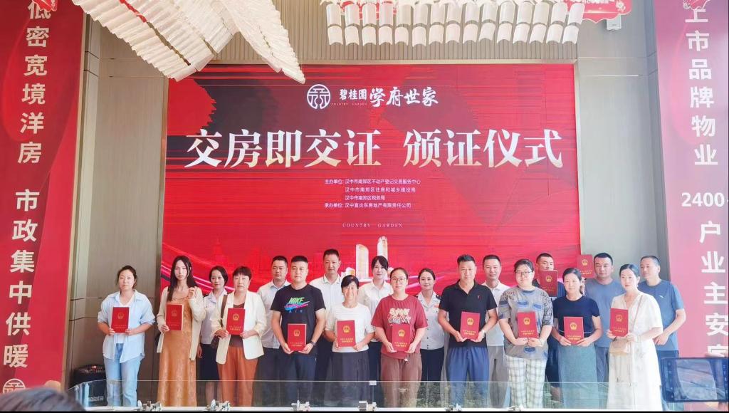 日前,在汉中市南郑区学府世家小区交付现场,部分拿到新房钥匙的业主现场领取了不动产登记证书,开启“交房即交证”服务模式,本次共发证92户。
