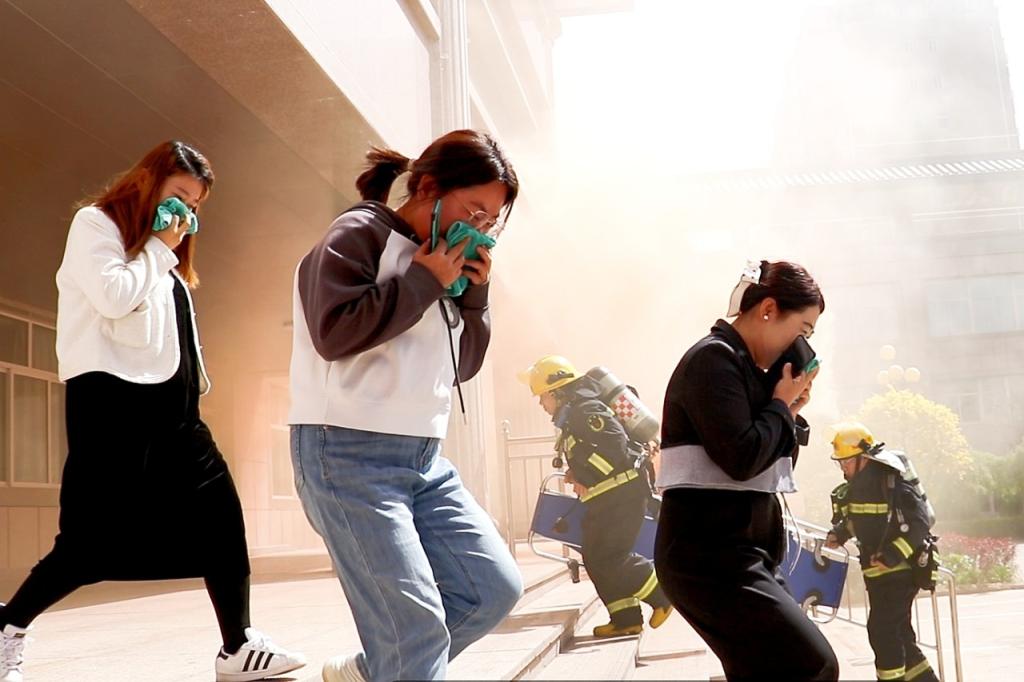 演练现场,消防人员指导楼内职工采用湿毛巾捂鼻的方式模拟火灾疏散逃生,确保大家掌握正确的逃生技巧。安全疏散后,消防人员通过现场模拟火灾和油锅起火等场景,耐心讲解和演示干粉灭火器的使用方法及厨房火情处置技巧,并邀请干部职工按照“一提、二拔、三握、四压”的步骤亲自体验灭火过程,进一步加深了大家对消防安全知识的理解和应用。