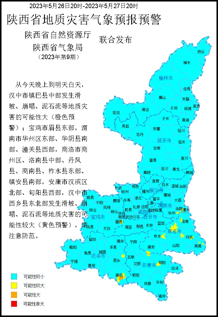 陕西省地质灾害气象预报预警 (2023年第9期)