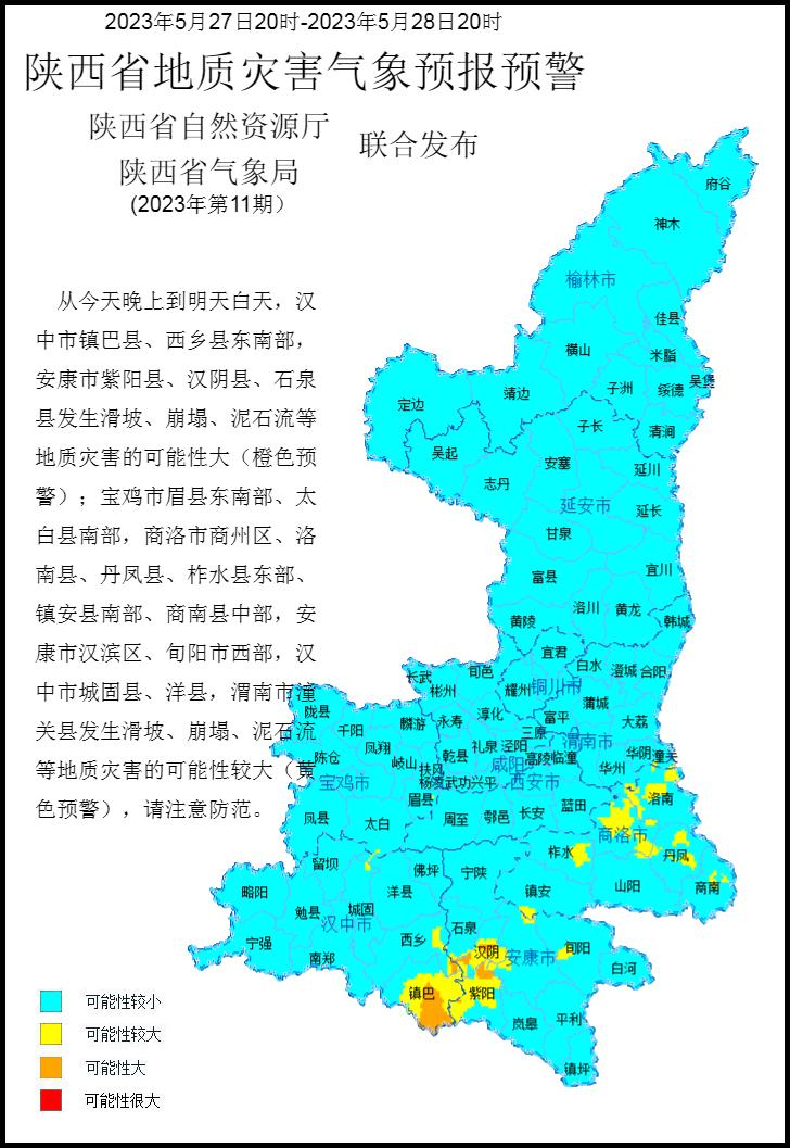 陕西省地质灾害气象预报预警 (2023年第11期)