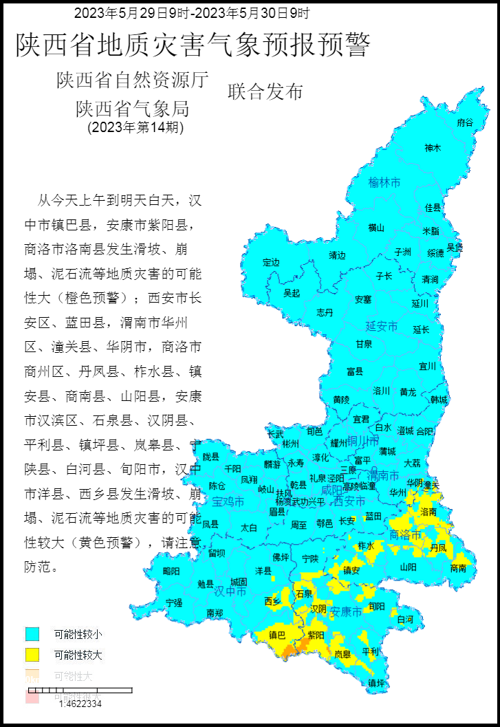 陕西省地质灾害气象预报预警 (2023年第14期)