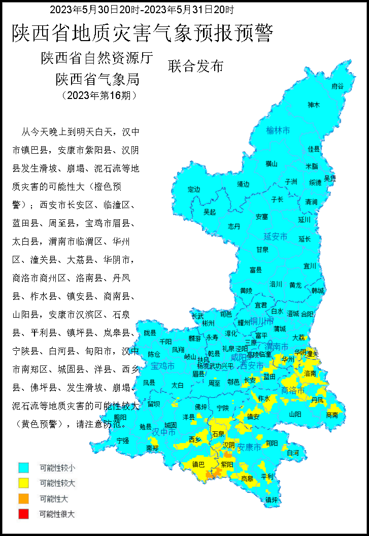 陕西省地质灾害气象预报预警 (2023年第16期)