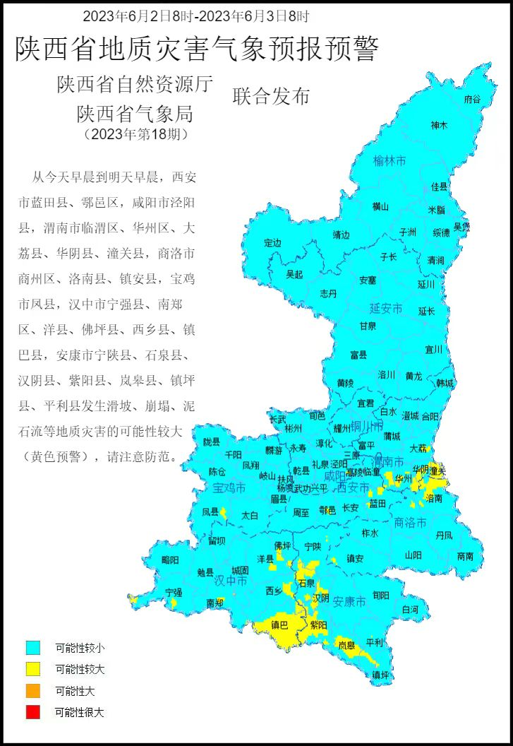 陕西省地质灾害气象预报预警 (2023年第18期)
