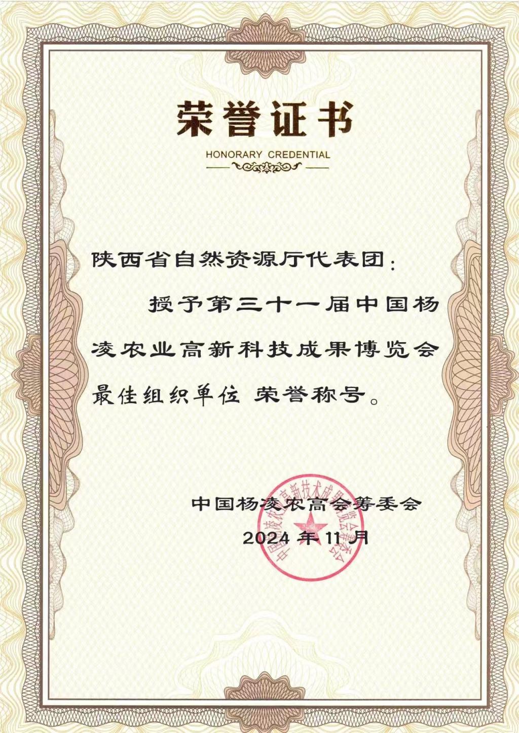 此外,中国杨凌农高会筹委会于近日公布了第31届杨凌农高会最佳组织单位、最佳展示单位等获奖单位名单。省自然资源厅荣获“最佳组织单位”奖。(省自然资源信息中心供稿)