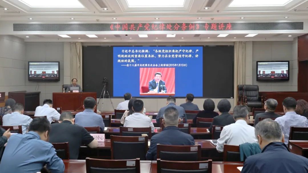 为深入开展党纪学习教育,4月19日下午,省自然资源厅举办“自然资源大讲堂”,邀请省委理论讲师团特聘专家、省委党校(陕西行政学院)段鹏飞教授,以“2023年新修订的《中国共产党纪律处分条例》解读”为题作专题讲座。在家厅领导参加了专题讲座。