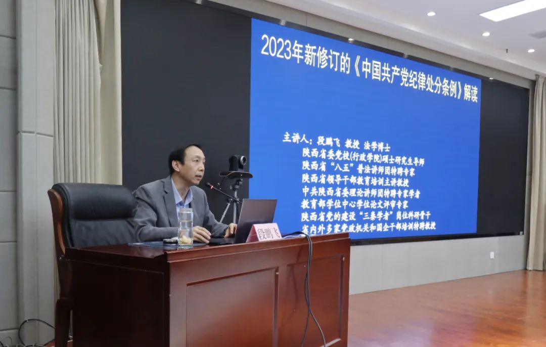 为深入开展党纪学习教育,4月19日下午,省自然资源厅举办“自然资源大讲堂”,邀请省委理论讲师团特聘专家、省委党校(陕西行政学院)段鹏飞教授,以“2023年新修订的《中国共产党纪律处分条例》解读”为题作专题讲座。在家厅领导参加了专题讲座。