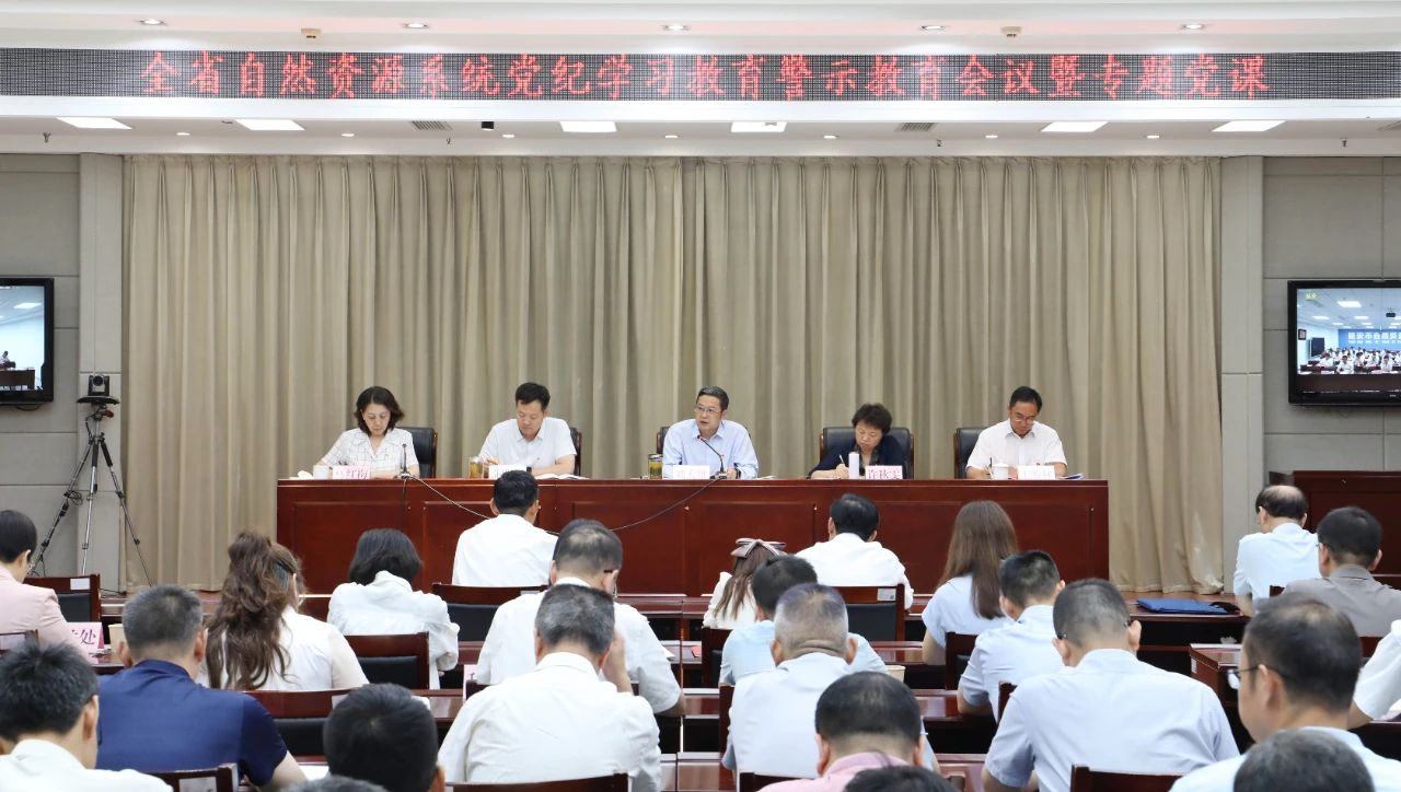 6月28日上午,省自然资源厅召开全系统警示教育会议,厅党组书记、厅长刘天雄主持会议并讲党纪学习教育专题党课。会议传达学习了习近平总书记关于全面加强党的纪律建设的重要论述,通报了近年来全省自然资源系统查处的领导干部违纪违法案件及警示教训。厅领导许秋雯、蒲明辉、王雁林、马红梅以及李怡同志出席会议。