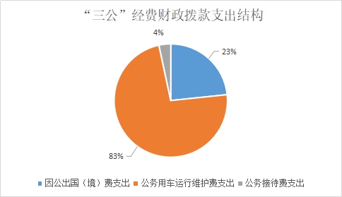 2019年“三公”经费财政拨款支出决算中,因公出国(境)费支出决算26.6万元,占“三公”经费总预算23.3%;公务用车购置费支出0万元;公务用车运行维护费支出决算83.51万元,占“三公”经费总预算73.3%;公务接待费支出决算3.83万元,占“三公”经费总预算3.4%。具体情况如下: