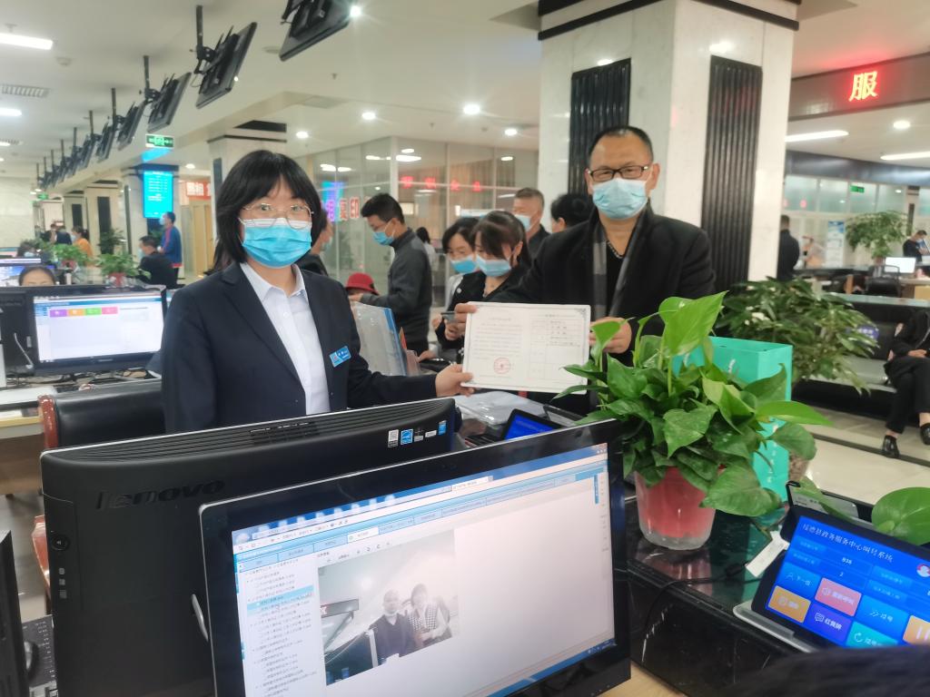 4月22日,绥德县不动产登记服务中心为市民马先生颁发了首张不动产登记证明—“蓝本本”。