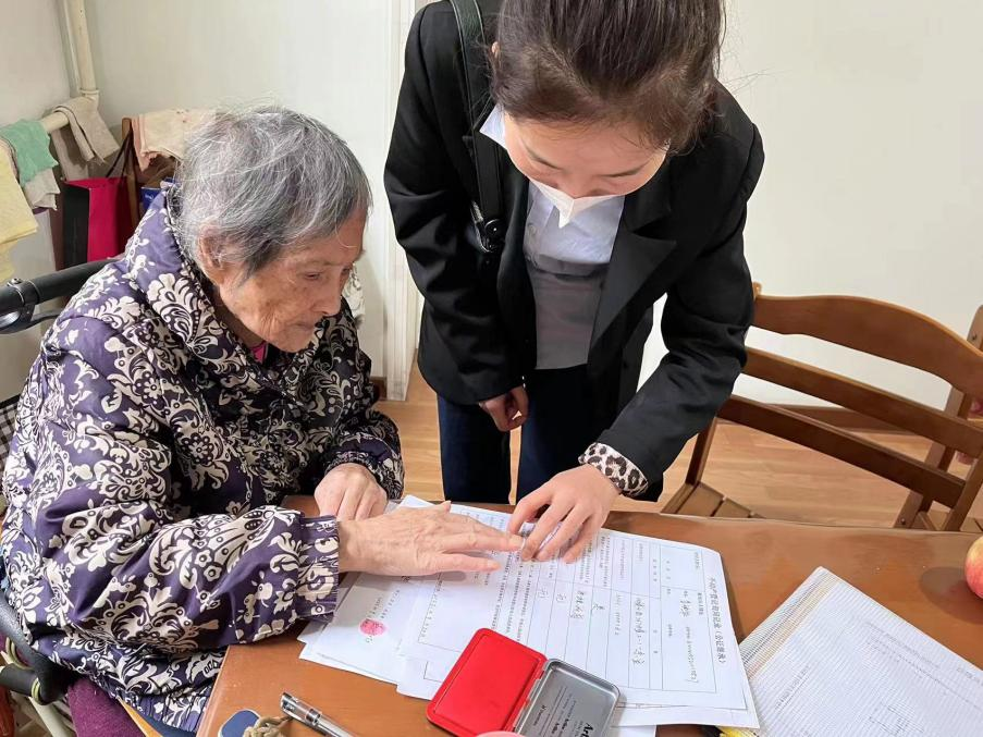 在得知此情况后,分局不动产登记服务中心工作人员主动联系李某家属,积极沟通对接、协商上门服务,让老人足不出户即顺利办结心头难事。在工作人员耐心解说和指导下,老人在办理不动产继承的申请材料上一一签字、按手印,很快就完成了不动产继承申请。萦绕心头的大事终于落地,老人由衷表示:“真是太感谢你们了,帮我们解决了这个大事情,谢谢啦。”