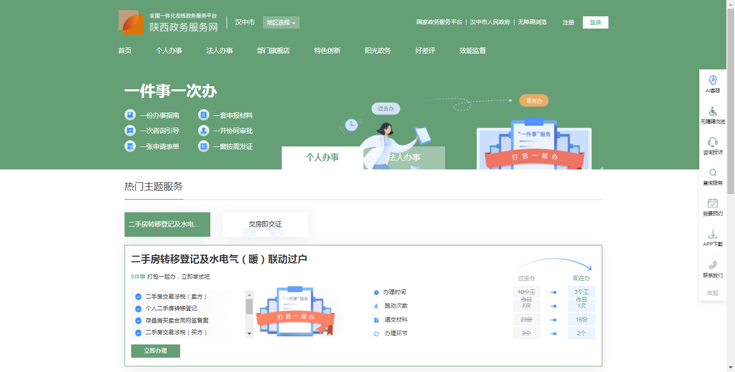 2022年8月底,汉中市局依托微信小程序全面上线了不动产登记在线申请和电子证照服务功能,不动产登记实现了线上申请与线下服务相互依托、相互补充、协同推进的登记举措。2023年1月9日,汉中市不动产登记 “一件事一次办”平台正式上线试运行,标志着汉中市在加快推进“一件事一次办”集成改革工作方面取得新突破。