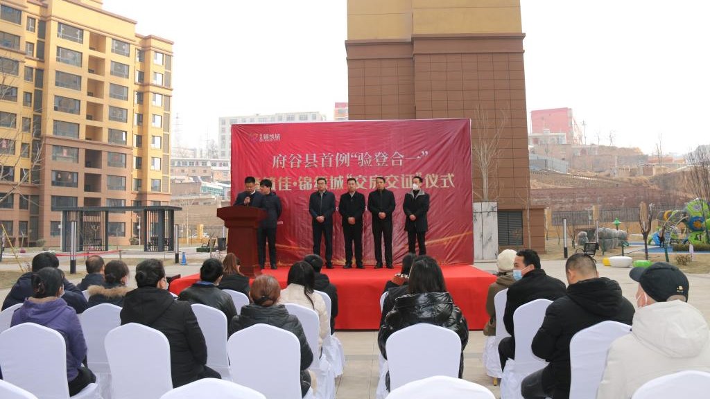 2月17日,府谷县在筑佳·锦绣城举行“验登合一、交房即交证”仪式,业主在领取新房钥匙时,同步领到了不动产权证书。