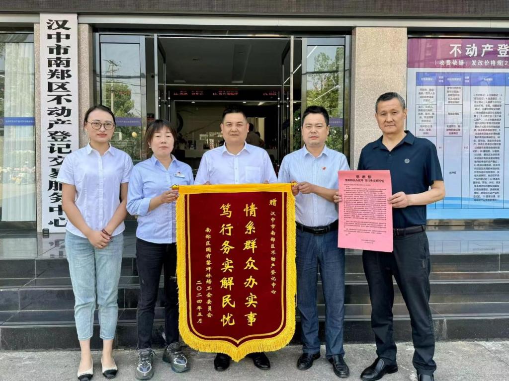 近日,黎坪林场新苑小区业主代表向南郑区不动产登记中心送上了一面锦旗,对该中心在过去几年来办理房产证过程中给予的大力支持和辛勤付出表示衷心感谢。