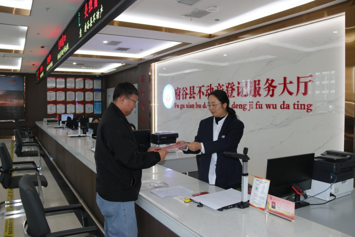近日,内蒙古籍吉仁内玛先生在府谷县不动产登记服务大厅办理了位于内蒙古自治区杭锦旗锡尼镇房屋的不动产权证,标志着府谷县不动产登记“跨省通办”服务全面展开。
