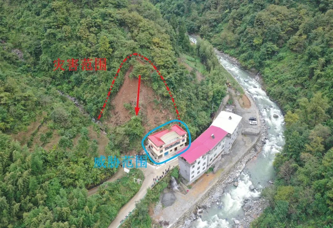 9 月 19 日 15 时 55 分,紫阳县高桥镇权河村三组吴家院子滑坡在册隐患点倾角发生变化,触发红色预警,预警消息以短信方式通知技术人员和防灾责任人,村级责任人现场核查发现该滑坡出现3条新的拉张裂缝,裂缝最长约15m,裂缝宽约35cm,深约50cm,综合研判该滑坡处于强变形临滑阶段。19 日 16 时5 分,村委会立即组织受威胁住户1户3人紧急撤离。19日16时8分,滑坡发生,造成房屋主体及道路部分受损,直接经济损失1万元。由于预警和撤离及时,成功避免1户2人伤亡,避免经济损失1万元。