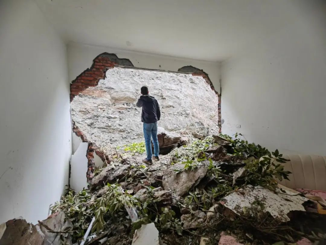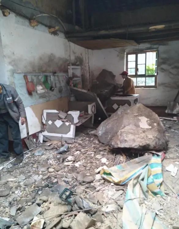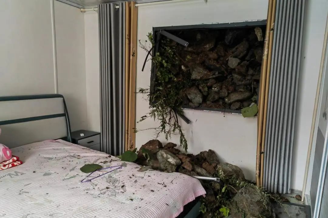 9月29日上午,汉滨区坝河镇斑竹园社区支部书记汪顺金在地质灾害日常巡排查过程中发现,斑竹园社区12组张广群房后坡体有变形破坏迹象,坡面有滚石坠落,随即组织受威胁的1户7人进行了避险转移。10月4日12时10分,崩塌发生,崩塌体堆积于坡脚,造成4间房屋受损,直接经济损失约45万元。由于撤离受威胁人员及时,成功避免1户7人伤亡。