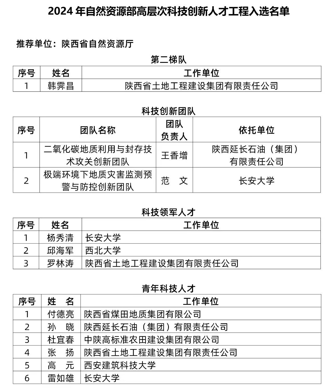 近期,自然资源部办公厅公布2024年高层次科技创新人才工程入选名单,我省1人晋升第二梯队,2个科技创新团队、3名科技领军人才、6名青年科技人才入选。