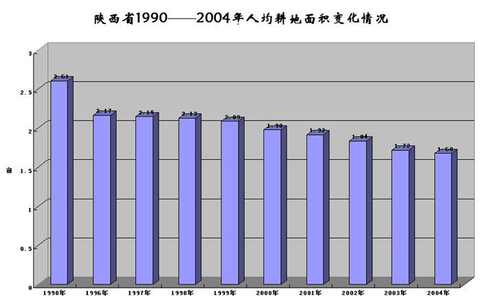 陕西省1990――2004年人均耕地面积变化情况