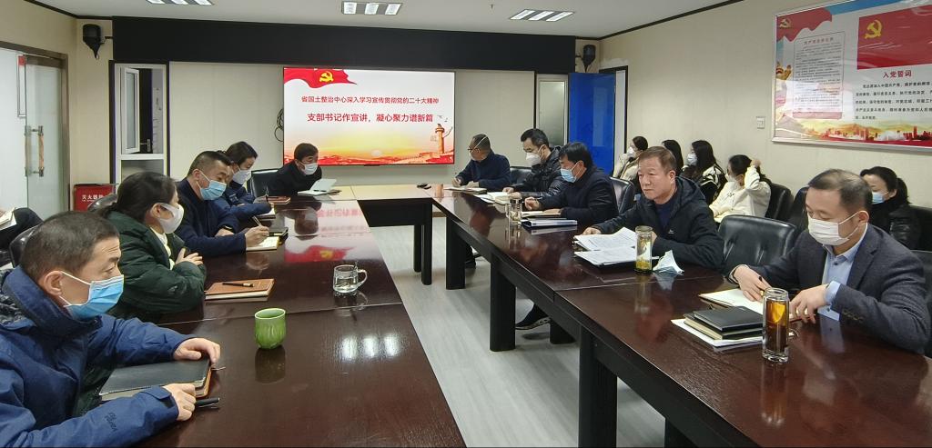 12月12日,省国土整治中心召开党员大会,党支部书记刘耀斌同志为全体党员作“党的二十大精神”专题宣讲。