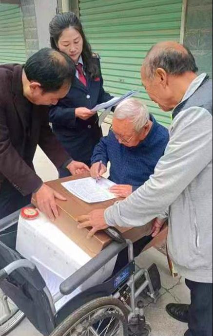 “上门服务”是西乡县不动产登记中心践行“三个年”活动,全面提升作风能力建设,深入推进为群众办实事的重要举措,为行动不便的特殊群体在办理不动产登记时提供便利,让群众实实在在感受到不动产登记的服务“温度”,提升人民群众的满意度。(西乡县局石晓刚兰勇供稿)