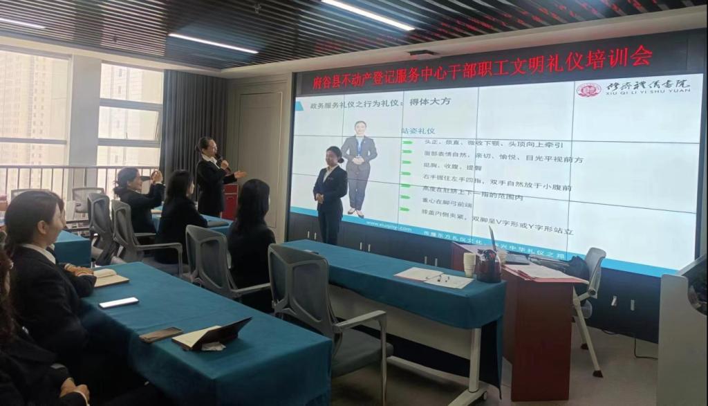 为深化“三个年”活动,持续提升干部作风能力,优化不动产登记营商环境,4月15日,府谷县局举办了“学礼仪 树形象 优服务”干部职工文明礼仪规范培训班,不动产登记服务中心和自然资源博物馆干部职工参加了培训。
