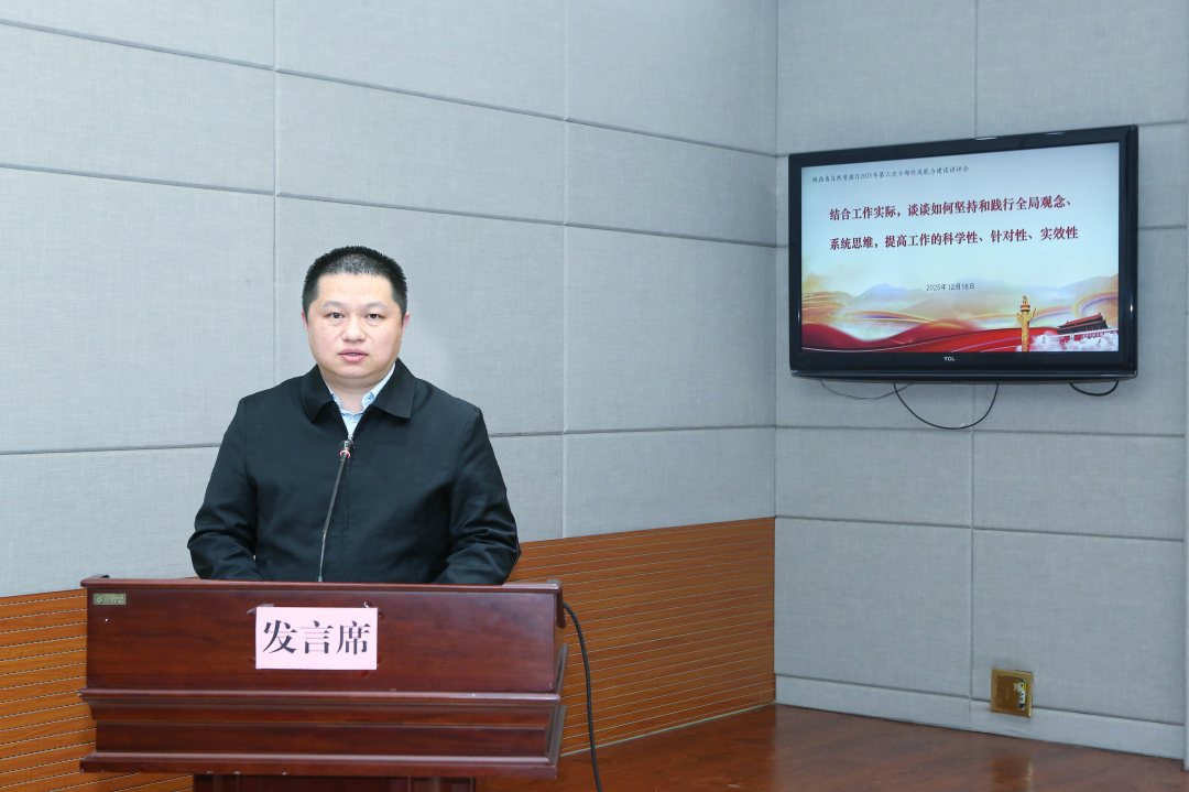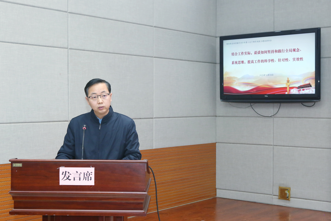 12月19日晚,省自然资源厅组织召开2025年第六次作风能力建设讲评会,以“结合工作实际,谈谈如何坚持和践行全局观念、系统思维,提高工作的科学性、针对性、实效性”为主题进行深入交流。会上通过随机抽取和主动报名的方式,选取了10名同志进行交流发言。在家厅领导、厅机关和法务中心全体人员、厅属事业单位科级以上干部共160余人参加会议。