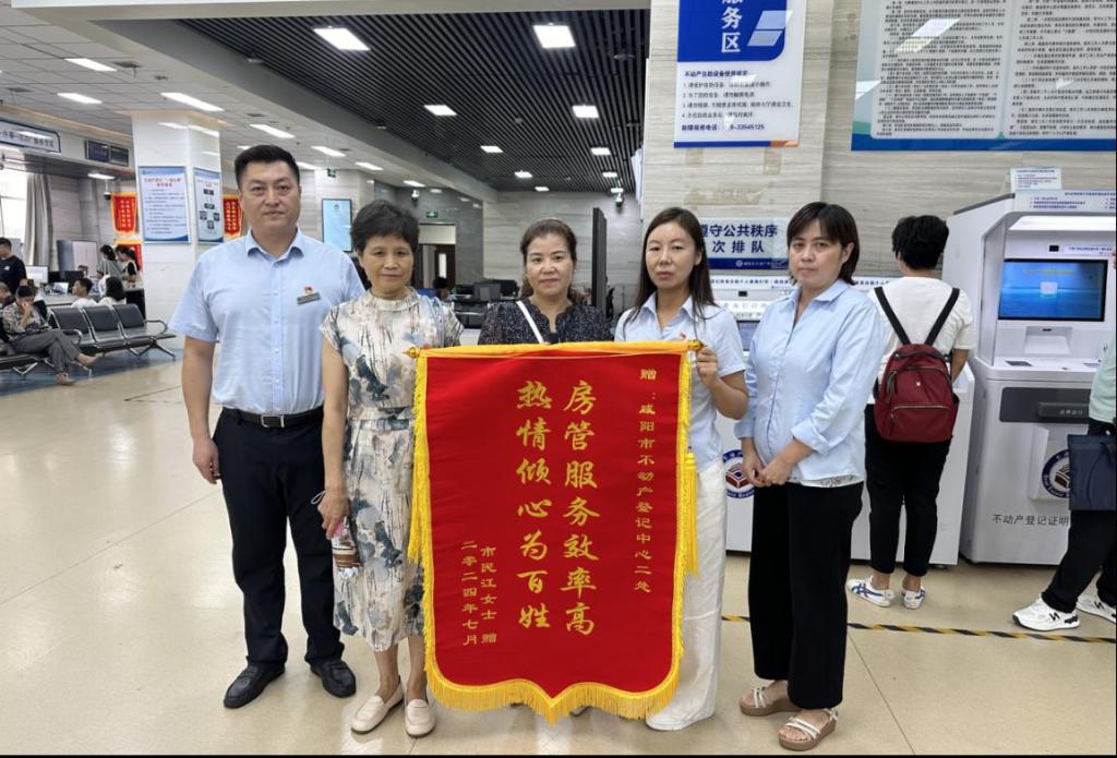 8月26日,咸阳市不动产登记中心秦皇路登记大厅收到了办事群众送来一面写着“房管服务效率高 热情倾心为百姓”的锦旗。