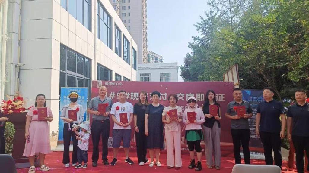 9月4日,沣渭怡心岛二期项目举行“交房即交证”仪式。在交付现场,该小区8#楼、9#楼的424户业主领到了不动产权证书及新房钥匙。