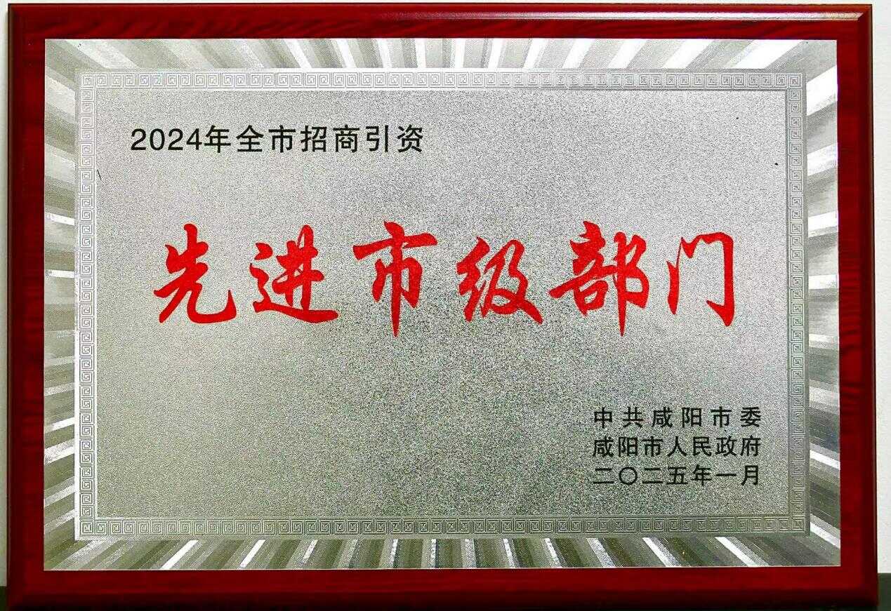 近日,在咸阳市2025年招商引资大会上,咸阳市局被市委、市政府评为2024年全市招商引资先进市级部门。